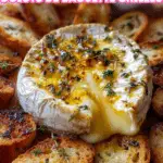 Étape 5 : Si je veux plus de fondant, je remets mes poires au four 2-3 minutes – juste pour que le fromage bulle un peu – cette odeur, c’est un rêve sous mes yeux ! Je sors, je pose quelques brins de romarin frais – cette touche verte, c’est mon élégance – et je verse un filet de miel en plus – pas trop, juste pour briller ! Je regarde ce plat avec fierté – ces poires fondantes, ce fromage riche, c’est trop beau !