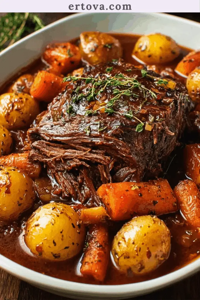 Le rôti de bœuf braisé lentement avec légumes fondants est une recette de patience et de récompense. En cuisant à basse température pendant plusieurs heures, la viande devient incroyablement tendre. Les légumes absorbent les sucs du bœuf, les herbes et le bouillon, ce qui leur donne une saveur profonde et une texture fondante. C’est une recette qui ne nécessite pas de surveillance constante, mais qui offre une explosion de goût à chaque bouchée. Elle est aussi pratique à préparer à l’avance et se réchauffe à merveille. C’est le genre de plat qui réunit les générations autour d’une table. Il s’inscrit dans la tradition des repas mijotés de la cuisine française, tout en étant adaptable selon les saisons et les préférences.